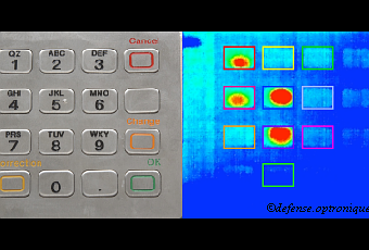 La rémanence de la chaleur des touches laisse à l’attaquant quelques minutes après votre départ pour percer votre code secret, cela dépendra de la sensibilité de la caméra thermique employée. Combiné à un vol de carte ou une copie par skimming, votre compte bancaire n’est plus à l’abri!