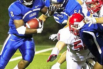 #8 Rotrand contournant la d-line des Redmen devant l'air impuissant de #50 Ben Thompson - Photo Dom Bernier