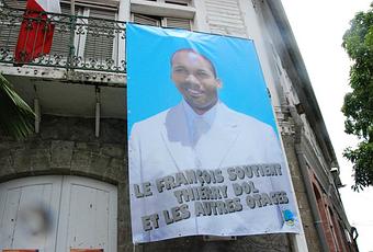 L'un des premiers gestes que devra faire Thierry Dol après sa libération et son retour en Martinique, sera d'enlever cette affiche sur la facade de la Mairie du François.