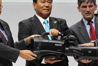 Lors de sa conférence de presse IFA 2011, le constructeur Panasonic a annoncé qu’il serait l’un des partenaires privilégiés des prochaines Jeux Olympiques qui se dérouleront l’année prochaine à Londres. Les équipes Panasonic seront en charge de filmer les épreuves en 3D avec des caméras de leur fabrication et notamment la dernière du genre portée (voir la photo ci-dessous) par les représentants du constructeur et du CIO.