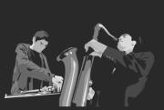 Avec ses tourne-disques Tony S. pose un riddim sur lequel Fred Burham improvise au saxophone, aux congas Sylvain Giraud.
