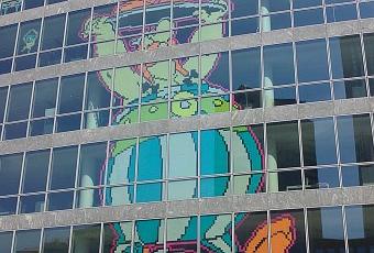 On se souvient du portrait d'Ezio Auditore Da Firenze. Cette Fois ci c'est Tintin et Asterix & Obelix qui sont représentés à très grande échelle (6 étage)