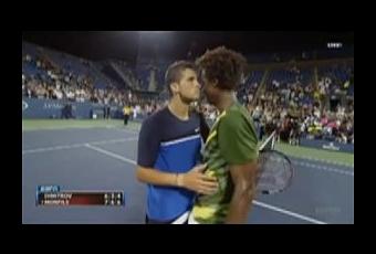Scène insolite à la fin du match entre Gaël Monfils et Grigor Dimitrov au premier tour de l’US Open. Au moment de la traditionnelle poignée de main, le bulgare a voulu embrasser le français sur la bouche. Regardez la réaction de Gaël Monfils.