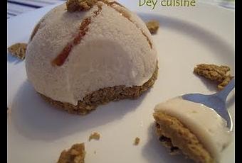 J'ai fait des dômes de sorbet pêche pour poser dessus ce croustillant, on peut aussi faire une mousse chocolat, abricot ou framboise!