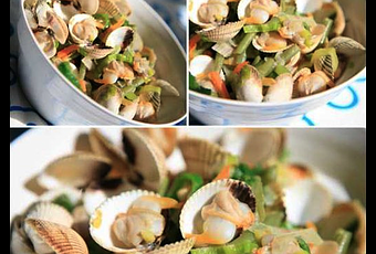 coques et palourdes, ail doux, gingembre, coriandre et courgettes