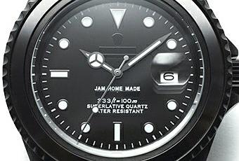 Le label japonais Jam Home Made vient de sortir une nouvelle montre inspirée par la célèbre Submariner de Rolex. Conçue en métal noir, elle comporte un diamant noir en haut du cadran. Disponible au Japon chez ZozoTown.
