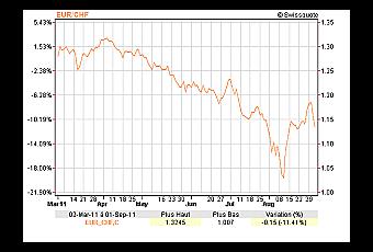 Dans le même esprit interventionniste, le Conseil fédéral a décidé, mercredi dernier 31 août 2011, de prendre des mesures visant à atténuer la force du franc. Ce premier train de mesures, chiffré à 870 millions de francs suisses ici, correspond en effet à une intervention étatique arbitraire :