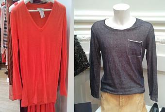 On note les couleurs vives du pull femme et les bords brut du polo homme. Cela permet d'associer la douceur de la maille, et l'esprit de prévention de l'environnement, sujet auquel la marque est sensible, pour une rentrée toute en délicatesse.