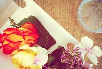 Mon premier tuto ne sera pas de moi mais de ma fille...Des fleurs coupées + des petits pots de verre + un peu d'eau =