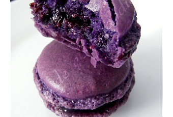 Macarons myrtilles et macarons au chocolat réalisés durant un atelier culinaire