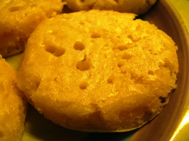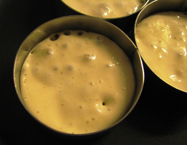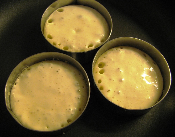 Laisser cuire jusqu'à que des bulles apparaissent sur le dessus. Ensuite, retirer les cercles (il faut qu'ils soient bien graissés ou alors recouvert de papier, pour que cette opération se fasse facilement !) et retourner les crumpets afin de faire cuire l'autre face.Recommencer jusqu'à épuisement de la pâte !