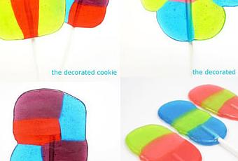 Fabriquer ses propres sucettes avec des couleurs en accord avec la fête ! Il suffit de choisir des bonbons « durs » de toutes les couleurs, de les agencer et de les mettre au four. Quelle magnifique idée de the decorated cookie !