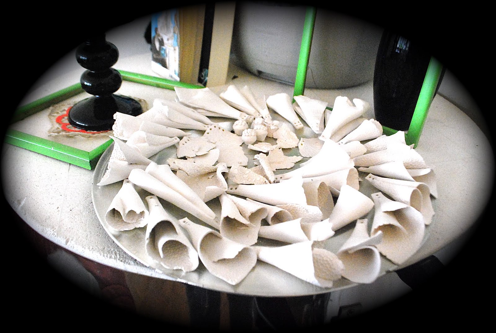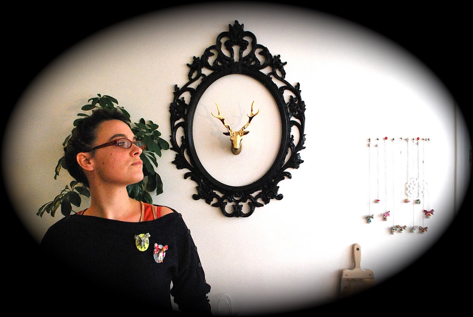 Aujourd'hui je vous propose de découvrir une créatrice de bijoux, que j'ai rencontrée en juillet dernier: DIMEZELL D. Son atelier est son lieu de vie. Autrement dit, ses créations sont partout chez elle. Ce qui est top c'est que tout se mélange, son four et son tour deviennent des meubles à part entière quand ils ne sont pas utilisés pour leur fonction première. Du coup, cela rend un appartement original, où bouillonne la créativité, au sens littéraire comme au sens pratique!Voici quelques photos dérobées, de son environnement, où le cerf jète un oeil sur les lieux, de part et d'autre de son appartement...