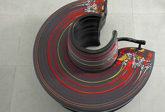 Sebastian Brajkovic is a dutch designer who works with Carpenters Workshop Gallery (London and soon, Paris). His artistic process starts by deconstructing historical pieces of furniture, in particular seventeenth-century chairs, then through a combination of wood carving, bronze casting and hand embroidering, he reconstructs an entirely new vision. His functional artworks are both a tribute to the past and a prelude to the future. In the Lathe works, Brajkovic plays with his ’sitters’ subconscious comfort of the familiar, by taking traditional forms and techniques and subverting them with contemporary attitude.