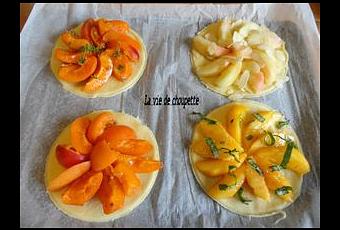 Les moyens étaient : des fruits dans ma corbeille, abricots, pêches blanches, nectarines jaunes et une pâte à tarte sablée toute prêt.