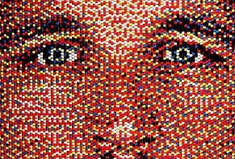 Tout simplement des punaises et un planche, voici le support choisi par Eric Daigh pour son travail de portrait ! Habituellement ses oeuvres sont formées d’environ 25.000 à 100, ooo punaises…