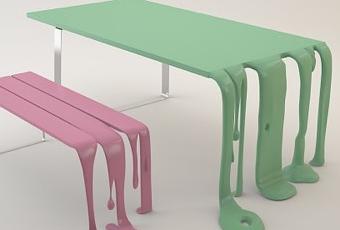Le designer français Florent Degourc fait partie de ces designers qui ont une approche ludique du design. Il le montre avec cette création nommée Smooth & Smoothie, un ensemble composé d’un banc et d’une table. Le designer joue ici avec les coulures des meubles qui sont réalisés en mousse de polyuréthane revêtu de résine. L’utilisation de cette matière offre une grande liberté d’action lors du processus de fabrication, c’est ce qui permet d’obtenir cet effet «fondue» hyperréaliste, avec comme autre avantage la résistance du matériau, car l’ensemble sait résister aux intempéries, ce qui en fait un ensemble outdoor idéal et original. Mais l’ensemble conviendra tout aussi bien dans une chambre d’enfant.