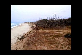 Par endroit, la dune a totalement disparue et la mer ronge les espaces boisés. On peut d'ailleurs observer une adaptation de la végétation. La flore forestière, désormais soumise au vent et aux embruns est en train de disparaître. Des espèces caractéristiques de la dune s'installeraient probablement, si l'Océan leur en laissait le temps.