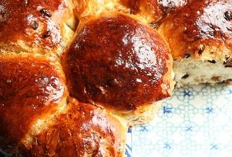 4) Fariner ensuite le plan de travail et dégazer la pâte, former 8 à 9 pâtons que vous disposerez dans un moule beurré ou dans un moule en silicone et laisser la brioche reposer une heure à température ambiante.