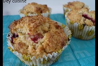 Pour 6 muffins : 150g de farine, 1 cc de levure, 1 œuf, 90g de cassonade, 4 cs de noix de coco râpée, 10 cl de lait de coco, 4 cs d’huile, ½ cc de sel, framboises- Préchauffer le four à 220°C.