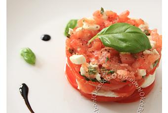Ajouter un peu de tartare de tomates-mozzarella-basilic, tasser, donner un tour de poivre du moulin.