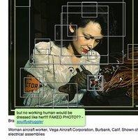 La photo de cette "ouvrière" est un exemple de photo "tagguée". Comme c'est une des premières de la collection (mise en ligne par la LOC), vous noterez l'acharnement déjà visible sur la nouvelle star de la classe ouvrière en guerre :