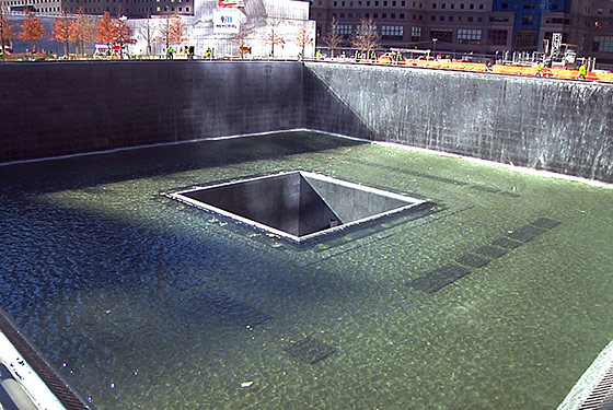 A l'emplacement exact de chacun des deux gratte ciel détruits, le projet "reflecting absence" à été choisi dans le plus grand concours architectural du monde. Deux bassins vides de la même dimension que les anciennes tours symbolisent de manière graphique l'absence des victimes dont le nom sera gravé dans le bronze sur le parapet des deux fontaines géantes.