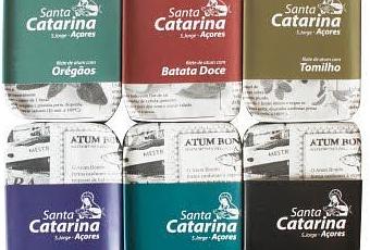 Joli packaging inspiré du nuancier Pantone pour ces boites de thons pêchés dans les eaux açoriennes. La conserverie Santa Catarina est située sur l'ile de Sao Jorge. Alors... à la patate douce, au thym, en filet, aux olives le thon se prete à toutes les sauce. Une information piochée sur le blog très actif de Tasca de Elvira qui propose des recettes, une cuisine portugaise ouverte sur le monde parfaitement adaptées aux gouts des gens de mer de la façade Atlantique.