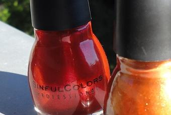 Non non non, je ne supporte pas le RC Lens. Cette association de couleurs s'explique simplement par le fait que j'ai dernièrement reçu ma commande Cherryculture dans laquelle j'avais glissé quatre vernis Sinful Colors. Pour aller plus vite dans mes test de vernis, j'ai donc fait une manucure avec les deux qui allaient le mieux ensemble : Under 18 et Old Gold.