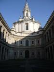 Difficile de venir à Rome sans rencontrer les oeuvres architecturales de Borromini. La première photo correspond à l'Eglise S. Ivo della Sapienzia photographiée en fin d'après-midi. La porte est ouverte et, ô merveille, si on ne peut visiter l'intérieur de l'Eglise (il faut réserver à l'avance comme c'est le cas pour une partie des monuments romains), on peut au moins admirer l'extérieur - un havre de paix lorsque l'on vient de la rue bruyante où se mélangent les piétons, les voitures, les scooters et ces boutiques Gucci, Armani et Dolce et Gabbana qui exhibent un luxe un peu tape à l'oeil (expression choisie à dessein étant donné l'une des photos suivantes - un trompe-l'oeil).