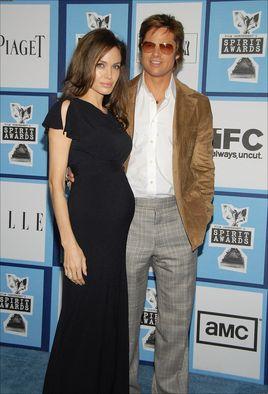 Angelina Jolie est apparue au bras de son compagnon Brad Pitt aux Independent's Spirit Awards à Los Angeles, dans une robe noire moulante ne laissant plus aucun doute quant à sa nouvelle maternité.