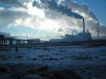 Théoriquement entourée de montagnes, la ville est de fait encerclée par un brouillard noirâtre qui s'ajoute à la brume glacée naturelle... cette pollution est en fait produite par les "Gir", ces tentes mongoles agglomérées tout autour de U.B... de 600 000 habitants, la ville est passée à plus de un million à la suite d'un exode rural massif de population nomades se sédentarisant autout de la ville de manière chaotique... ce petit monde se chauffe (et on ne peut pas leur en vouloir) au charbon de bois, qui produit une fumée noire et rend l'air irrespirable... Il faudrait emmener une délégation d'anti-nucléaires en voyage organisé dans le coin...