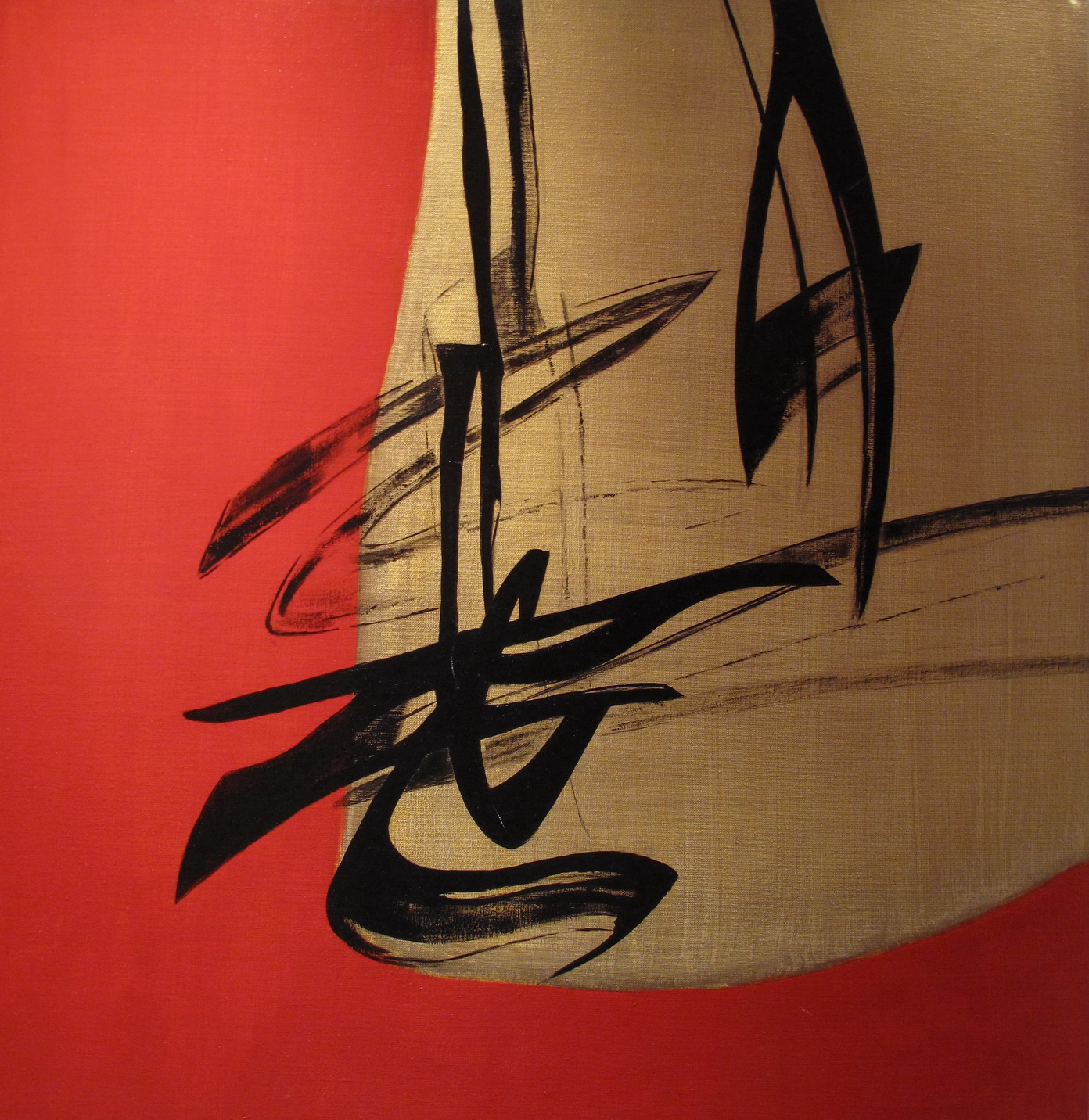 Ses dernières peintures manifestent encore une évolution. Elles s’éloignent un peu du graphisme,tout en restant dans le mouvement, l’élan,le geste ample. L’abstraction devient peut-être encore davantage spirituelle. « Aller plus loin » dit-elle. Et elle reste fidèle à ses rouges et noirs.