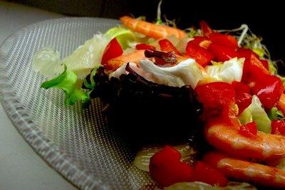Aussi, pour continuer la série "SLIM" et vous faire partager mon amour de fruit, voici donc une petite salade de crevettes qui en jette !