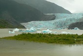 To the right of the glacier there is Nugget Falls.