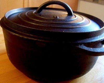 J'avais bien sûr une cocotte en fonte émaillée plus "moderne" , mais dur de régler la température des plaques électriques pour qu'elle n'attache pas.