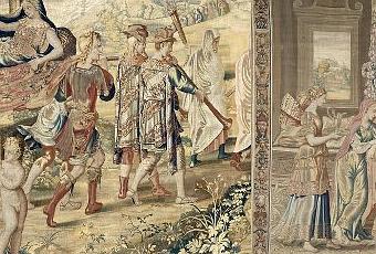 avec des objets d'exception relatant ce conte, et en particulier une tenture en six pièces, tissée au XVIIe siècle par des ateliers du faubourg Saint-Germain à Paris, et présentée en