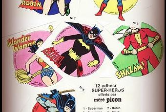 Enfant, je collectionnais les adhésifs des Super héros qui se trouvaient dans les boites de fromage la "Mère Picon". Toute une histoire... Nous nous faisions la guerre avec mon frère pour savoir qui de nous deux réussirait à posséder en premier, la totalité de la collection... Et en ce samedi pluvieux, en rangeant de vieux cartons, je suis tombée sur