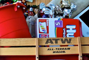 1. le tapis: il meuble bien la pièce et est très passe-partout, en plus il commence à avoir une valeur sentimentale...je l'ai roulée pour l'occasion ;-)2. les couches: pas besoin d'explication3. nos économies (sous forme des tirelires ;-)): en espérant que l'argent sera encore parmi nous suite au scénario catastrophe...sinon c'est du poids mort...c'est donc un pensez-y bien ;-)4. un ordinateur...entrer en communication avec d'autres survivants sera crucial5. quelques appreils photos pour documenter le tout6. les jouets préférés de mes enfants: ben oui, il y aura des journées de pluie et des longues soirées dans un bunker qu'il va falloir meubler...7. un bouteille d'alcool (j'ai attrapée de la vodka !) : monnaie d'échange possible, désinfectant probable mais surtout une manière de fêter la "fin du monde" ...8. un charriot pour contenir le tout...
