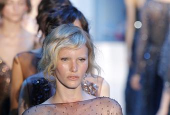 La collection Automne Hiver 2011-2012 du couturier libanais est divinement chic et glamour. Des robes ornées de pierres précieuses et de dentelles qui brillent comme des étoiles. La Femme Elie Saab est ainsi une étoile filante défilant sous un ciel parfaitement transparent . « C’est la femme fragile et sensuelle, la femme avec des rayons de lumière » Elie Saab