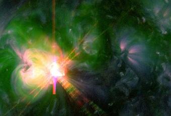 Ce 6 septembre 2011 à 22h20 TU, une éruption de classe X2.1 a été observée à la surface du Soleil. Surgissant de la tache sombre 1283, vaste foyer d’activité environ 10 fois plus grand que la Terre, elle a été précédée, plus tôt dans la journée, par une éruption de classe M5.3.