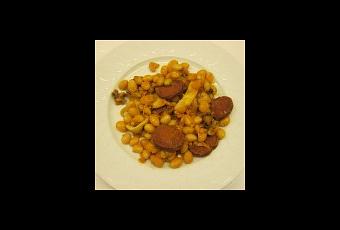- 4 petits chorizos à cuire, ou encore 2 saucisses Soubressade (saucisses espagnoles) ou en dernier recours, un chorizo sec classique