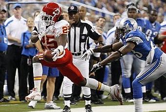 Encore des blessures: déchirure probable de l'ACL pour Charles, commotion cérébrale pour Vick et plus encore... -Tout indique que Jamaal Charles (RB, Chiefs) s'est déchiré l'ACL hier, sa saison serait donc terminée. Une résonance magnétique devrait confirmer le diagnostic aujourd'hui. Ça ne pourrait aller plus mal à KC. Charles a été le moteur du réveil de l'équipe l'an dernier avec sa présence dynamique et ses 1467 v. Sans lui, les Chiefs se tourneront vers Thomas Jones, ce qui n'est pas si mal quand même. Début de saison cauchemardesque pour la troupe de Todd Haley.