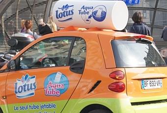 Paris, Lyon, Marseille, Bordeaux et Nantes sont actuellement le théâtre d’un roadshow des plus démonstratifs. Embarqués à bord d’une SMART XXL et d’une SMART 3D boostées d’un rouleau LOTUS® AQUA TUBE™ géant, des échantillons et bons de réduction immédiat seront distribués. 290 000 privilégiés auront le plaisir d’essayer gratuitement l’innovation. Une façon décontractée d’aborder la promotion d’un produit qui ne fait pas forcément rêver.