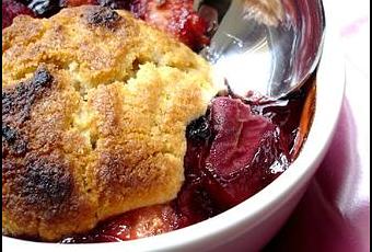 Après 10 bocaux de pêches au naturel, 12 pots de coulis de pêches et quelques kilos donnés, j'avoue que je n'avais plus vraiment d'idées pour écouler mes stocks de pêches de vigne... Ben oui, un arbre nain (car c'est bien de cela qu'il s'agit) ne devrait logiquement pas donner autant... d'un autre côté, de nain, il n'en a que le nom, comparé à moi (non, on ne rigole pas!), il fait au moins le double de ma taille... moi qui pensais en le plantant il y a 5 ans, que lui au moins ne me dépasserait jamais... foutaise! Voilà, le problème est posé... et maintenant qu'est-ce que je fais? Ça s'était sans compter Jamie's America, mon dernier achat de vacances... le cobbler cela faisait quelque temps que cela éveillait ma curiosité et comme tout le monde le sait, la curiosité est un vilain défaut, tout comme la gourmandise d'ailleurs! Alors pourquoi ne faire d'une pierre deux coups, en satisfaisant ma gourmandise et ma curiosité?