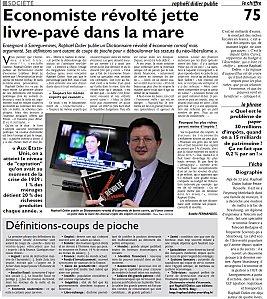 Tel fut le titre de l'interview que m'a accordé le Républicain Lorrain de Sarreguemines. Surprise par mon style bouillonnant et ma libre pensée, la très sympathique journaliste a pu constaté tout au long de notre entrevue que l'économie relevait souvent dans les médias d'une certaine "expertocratie", que je dénonce vigoureusement dans mon dictionnaire révolté d'économie !