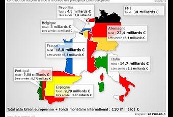 -Le plan d'aide de la Grèce en mai 2010-Depuis l’été 2011, les pays de la zone Euro sont secoués par une crise des marchés financiers. Les bourses chutent, entraînées par la baisse des cours des actions des banques principalement. Le CAC 40 a perdu environ un quart de sa valeur depuis fin juillet 2011. Il est accompagné par toutes les banques européennes comme la bourse de Londres (le Dow Jones) ou celle de Francfort en Allemagne. Même l’Euro a chuté par rapport au dollar et est passé sous la barre des 1,35 dollars, ce qui n’était plus arrivé depuis février 2011.