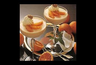 - En remplir 4 coupes. Les décorer de quartiers d'orange surmontés du macaron. Déposer sur chaque macaron un peu de crème réservée. Mettre au frais 3 h avant de servir.