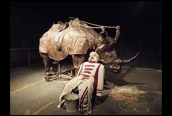 La ménagerie du Théâtre La Licorne, à la Gare Saint-Sauveur, à Lille, fait rêver ! Les animaux dans leurs cages sont impressionnants, surtout quand ils s’animent, actionnés par une manivelle ou un système électrique. Les écailles, en forme de cuilllères, font des vagues sur le dos du pangolin, le dindon fait la roue en tournant sur lui-même, un insecte grimpe au mur, les pingouins dansent et, le plus touchant, c’est peut-être ce mouton, trouvé mort, et dont le squelette se nourrit pour vivre au-delà de cette mort anonyme.
