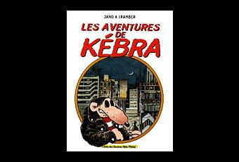 Né en 1960, Kébra ne connut pas d’aventures en BD avant 1978, soit à 18 ans seulement – à l’âge con donc, à l’âge bête. Créé par les plumes de Tramber et Jano, respectivement le narrateur et l’artiste, il se présenta d’abord sous les traits d’un simple loubard de banlieue qui pointait sa truffe dans le deal des protagonistes principaux d’une histoire courte, avant de devenir le héros de ses propres bandes. Encore que le terme de « héros » ne lui convient pas forcément très bien : si à la manière des cartoons il arbore un certain anthropomorphisme, mais d’inspiration bien française, il reste néanmoins un pur produit de son temps, soit la période post rock & roll à nette tendance punk, c’est-à-dire sans aucune considération pour les valeurs sociales.